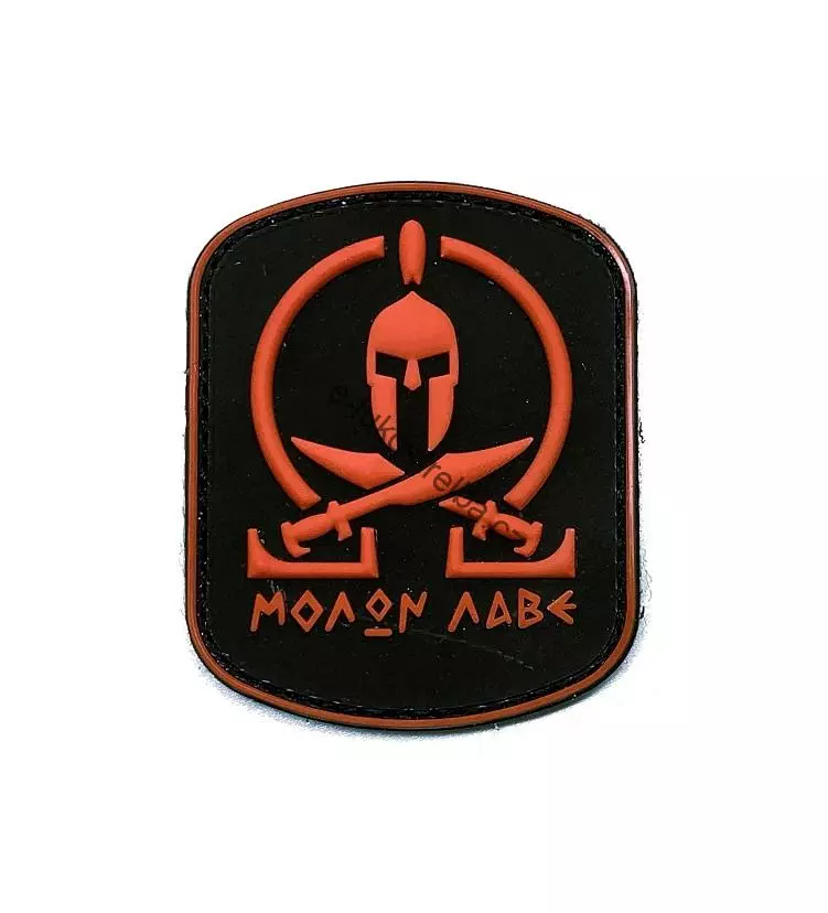 Moderní 3D PVC nášivka s tradičním vyobrazením Spartana. Hlavu bojovníka lemuje latinský nápis Molón Labe, což znamená "Pojď si pro mě". Zadní strana nášivky je opatřena suchým zipem Vel-Cro.
